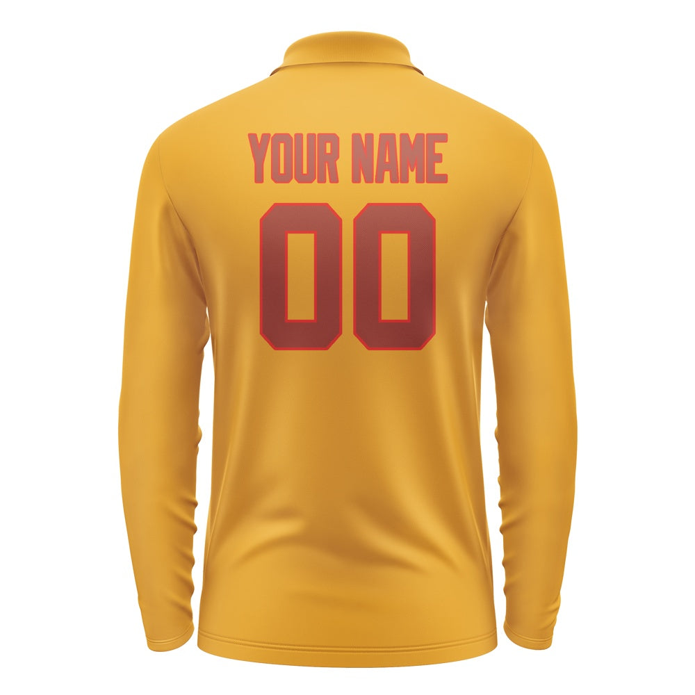 Custom Yellow Coral Red Long Sleeve Polo Shirt