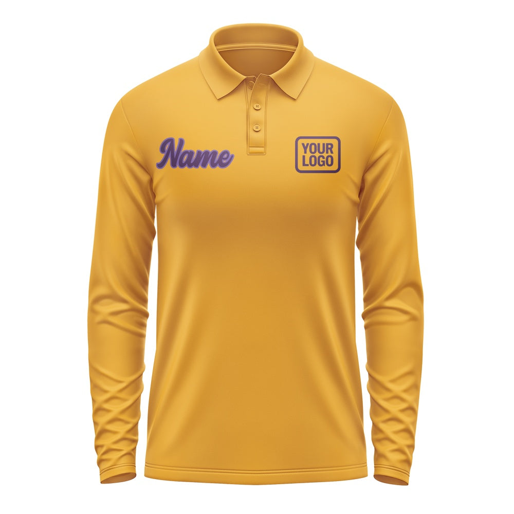 Custom Yellow Purple Long Sleeve Polo Shirt
