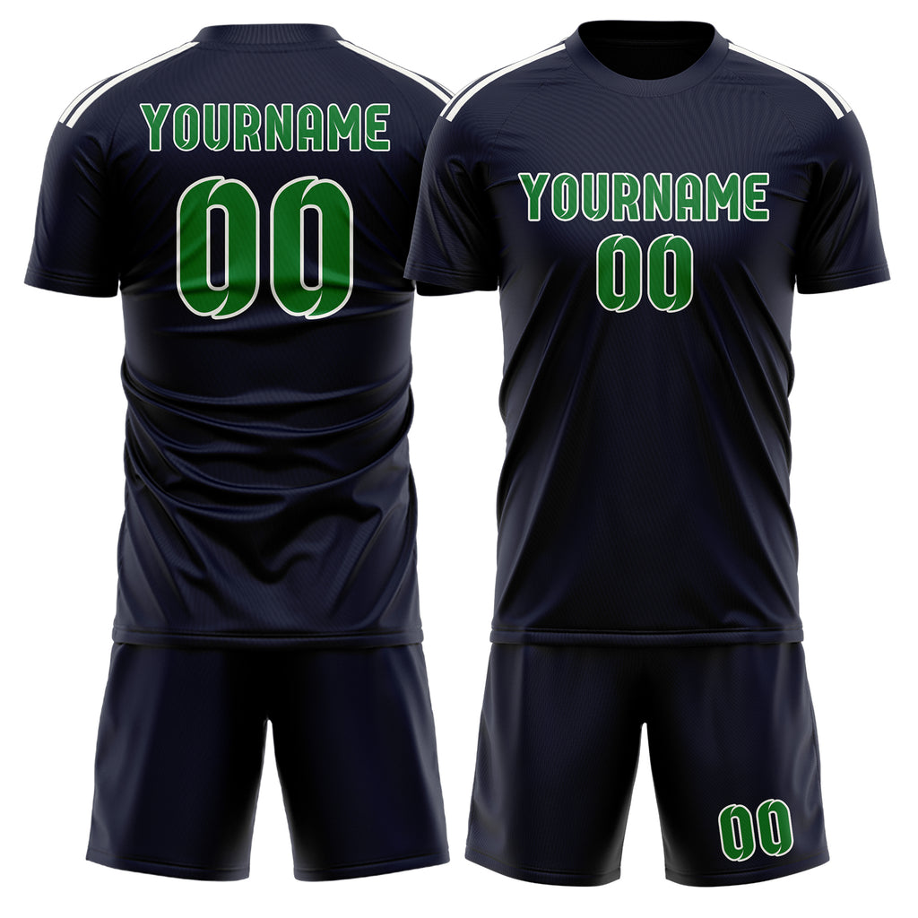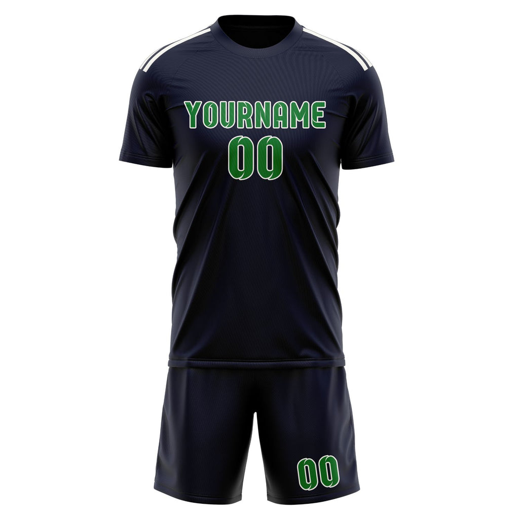 Custom Navy Emerald Green Soccer Jersey