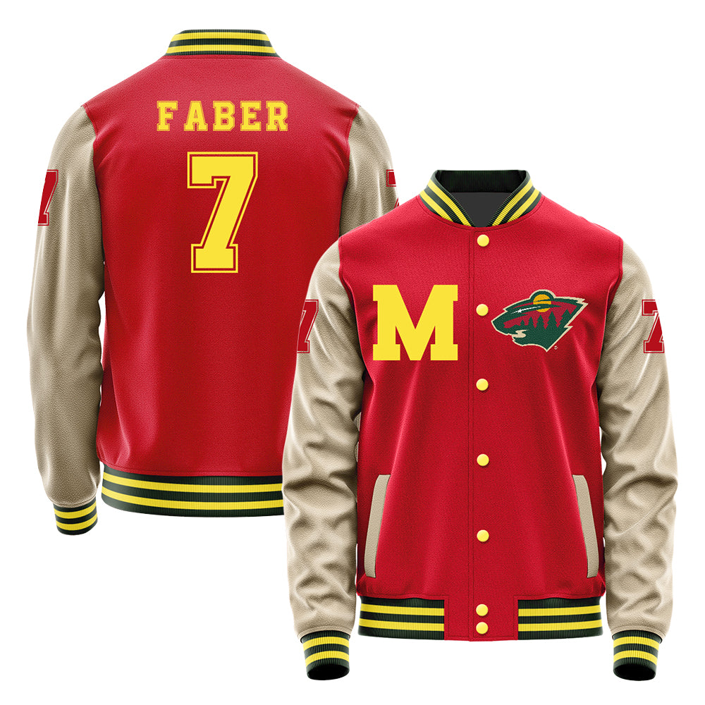 Minnesota wild #7 Brock Faber Varsity Letter Jacket