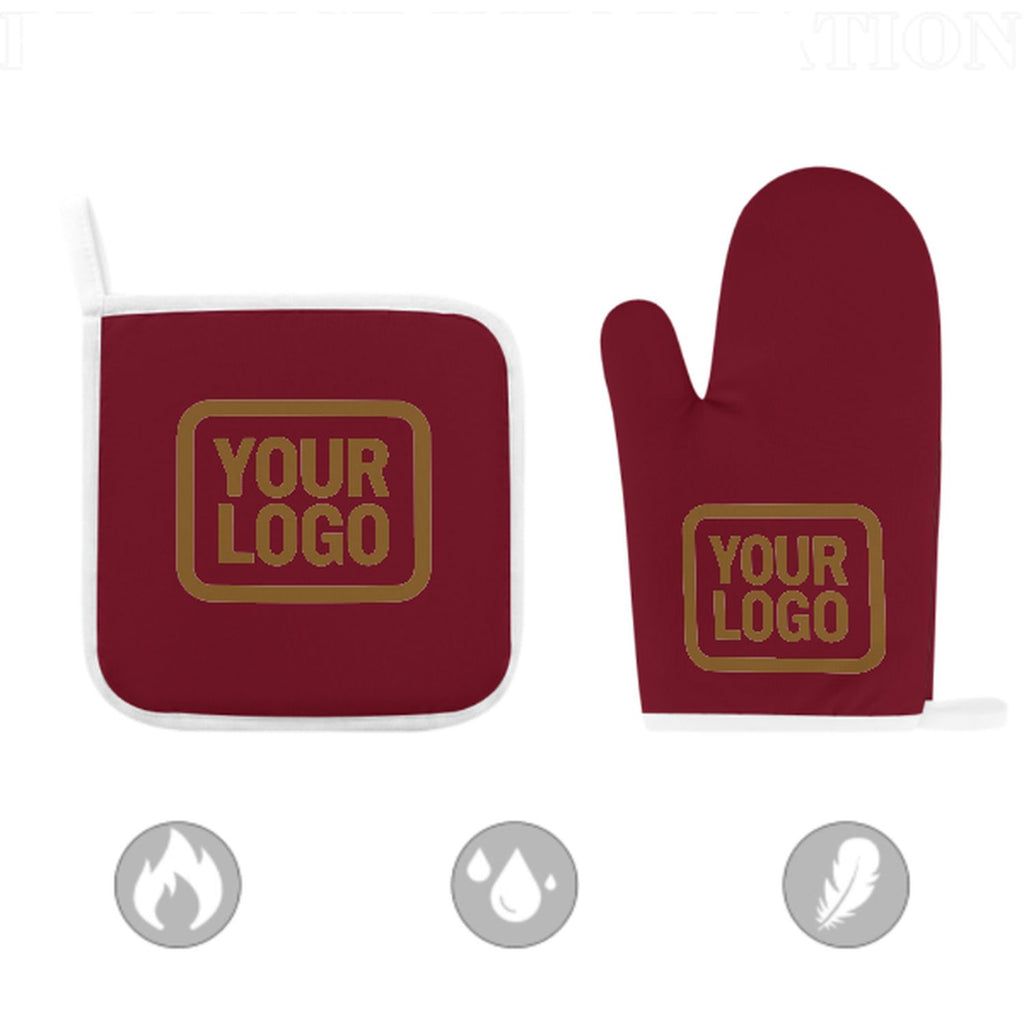 Custom Crimson Red Khaki Oven Mitt Set