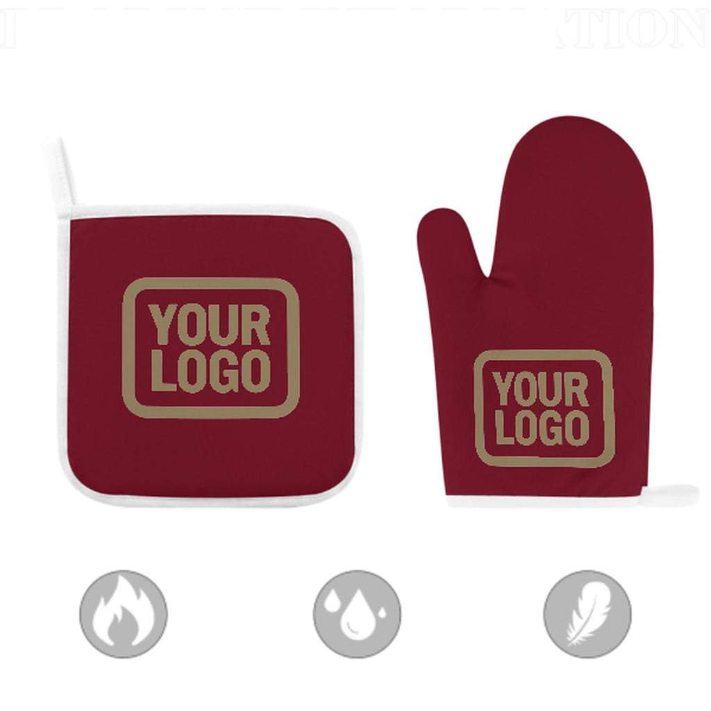 Custom Crimson Red Light Khaki Oven Mitt Set