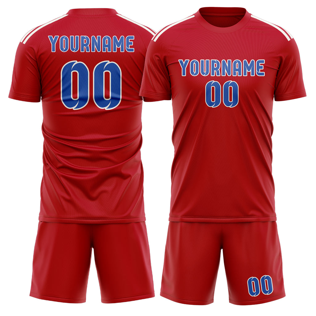 Custom Red Sky Blue Soccer Jersey