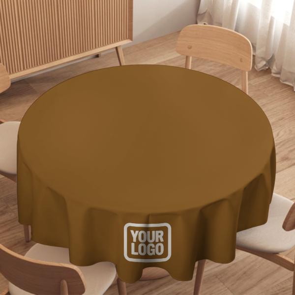 Custom Khaki White Round Table Cloth