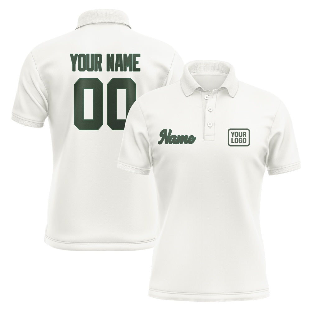 Custom White Dark Green Short-Sleeve Polo Shirt