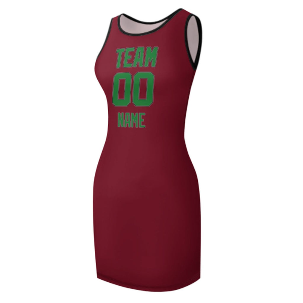 Custom Crimson Red Emerald Green Sleeveless Vest Dress