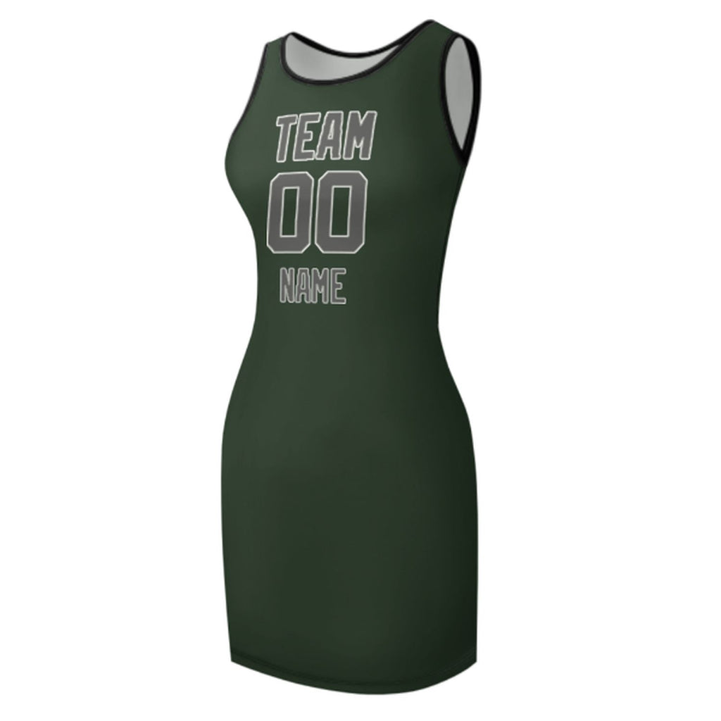 Custom Dark Green Dark Grey Sleeveless Vest Dress