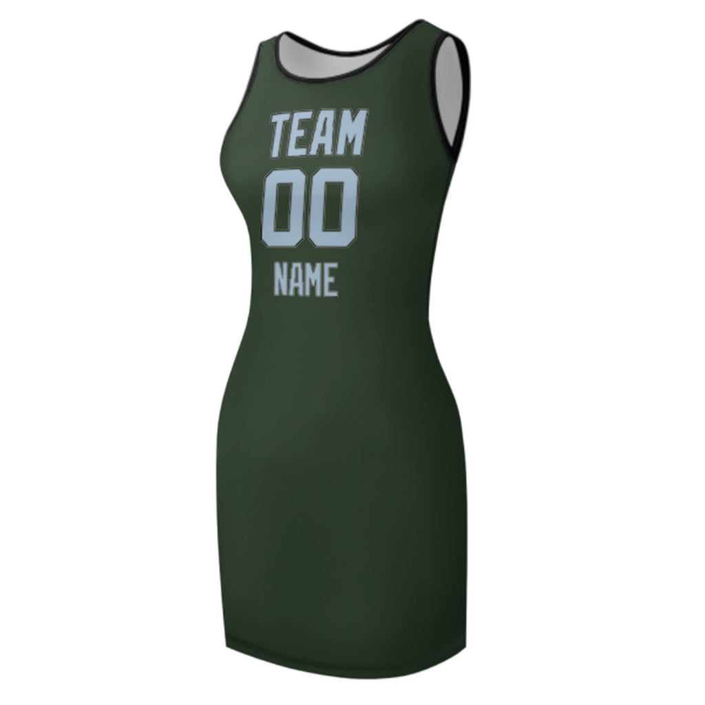 Custom Dark Green Light Blue Sleeveless Vest Dress