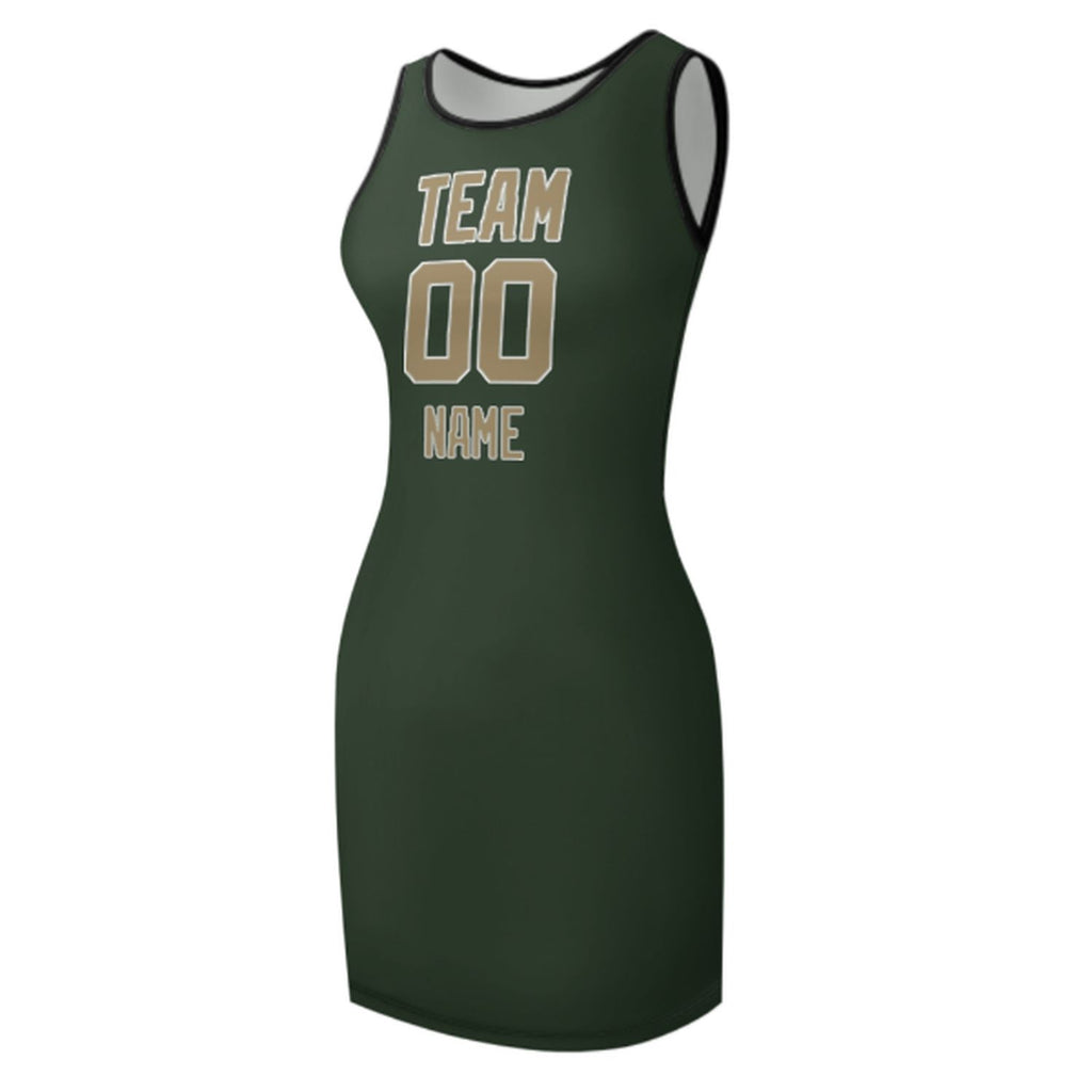 Custom Dark Green Light Khaki Sleeveless Vest Dress