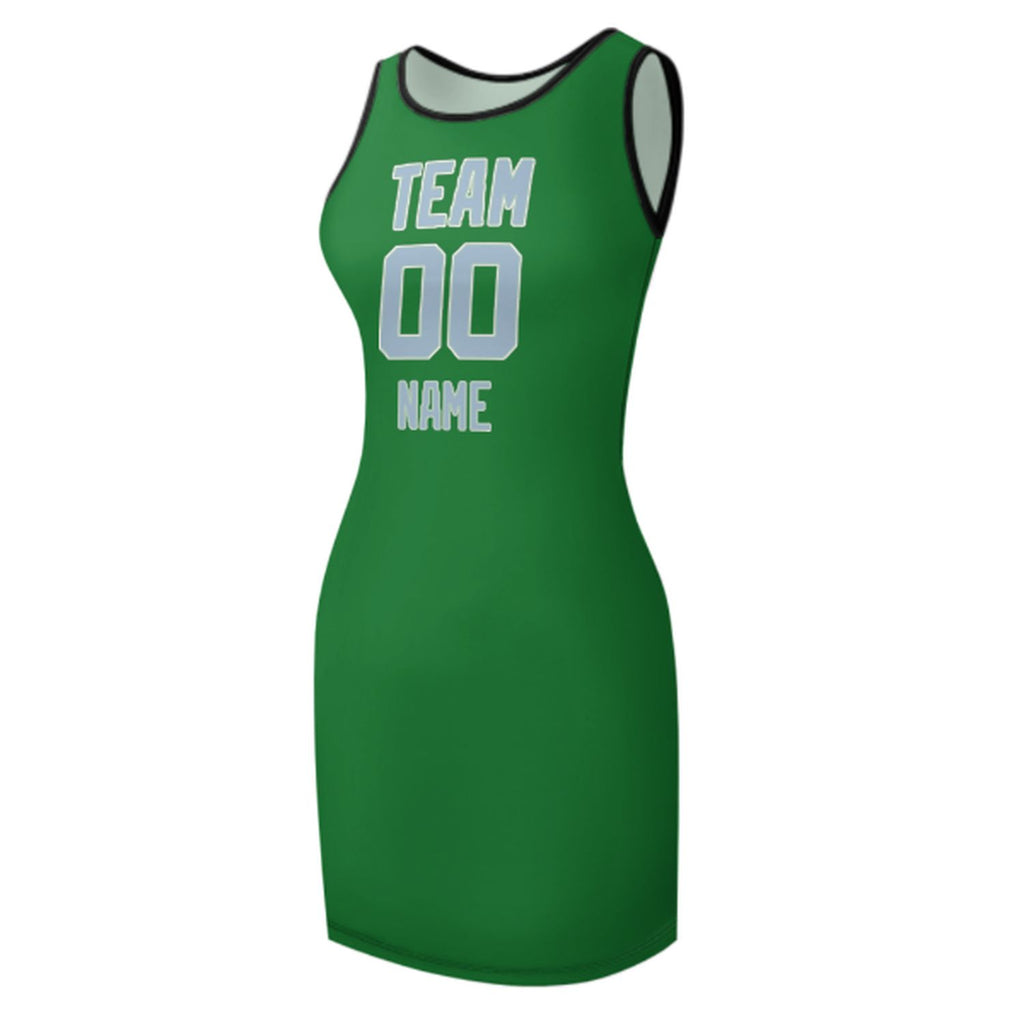 Custom Emerald Green Light Blue Sleeveless Vest Dress