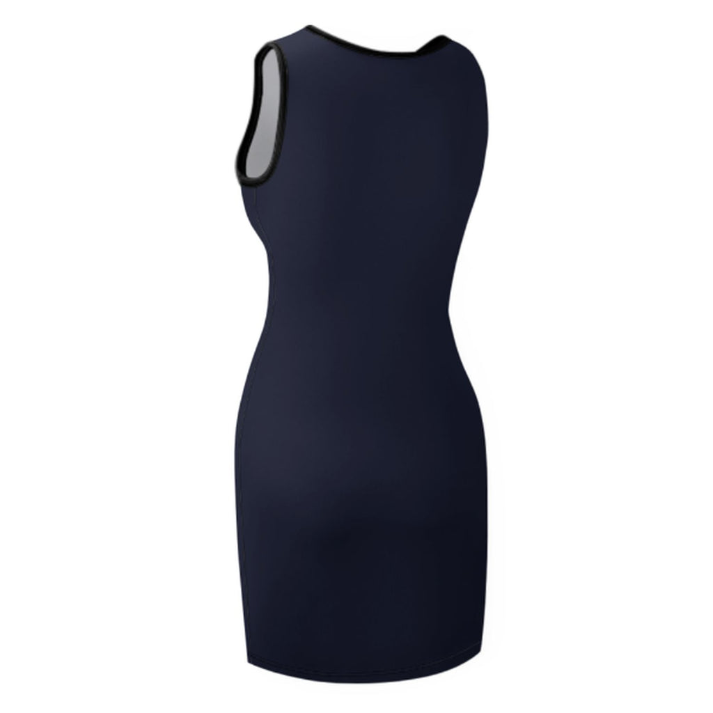 Comfort: Round neckline with sleeveless design – knee-length cut, ideal for various body types