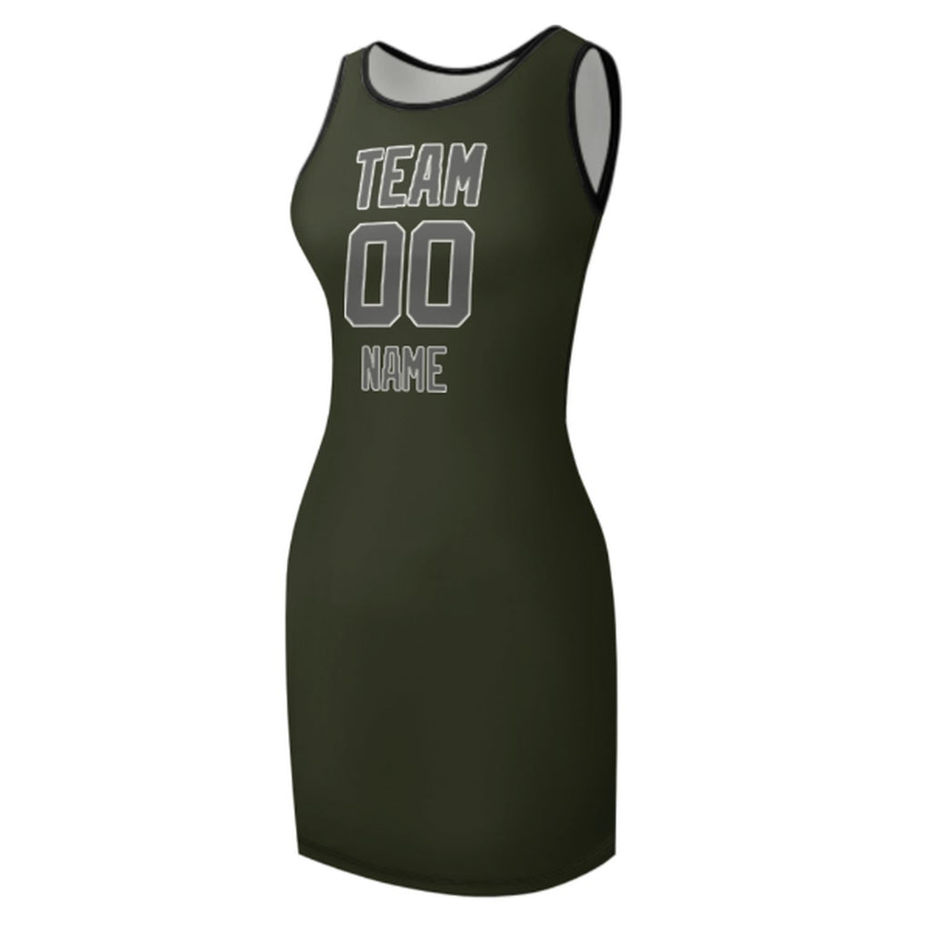 Custom Olive Dark Grey Sleeveless Vest Dress