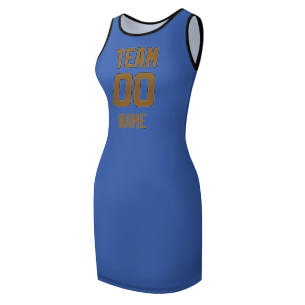 Custom Sky Blue Khaki Sleeveless Vest Dress