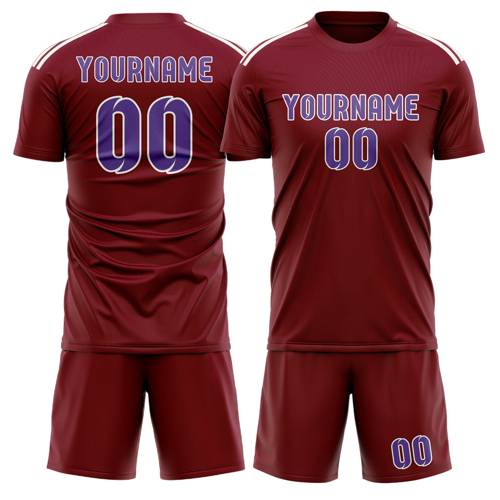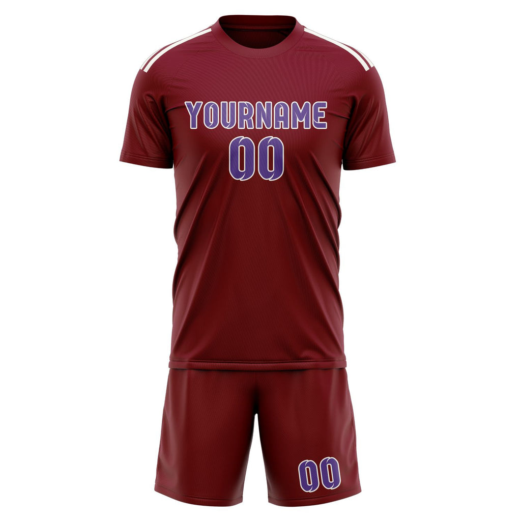 Custom Crimson Red Light Purple Soccer Jersey
