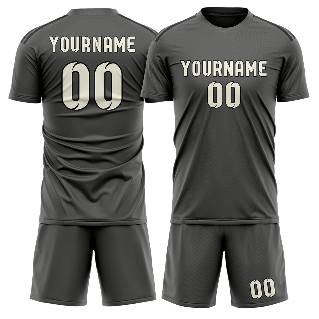 Custom Dark Grey Cream Soccer Jersey