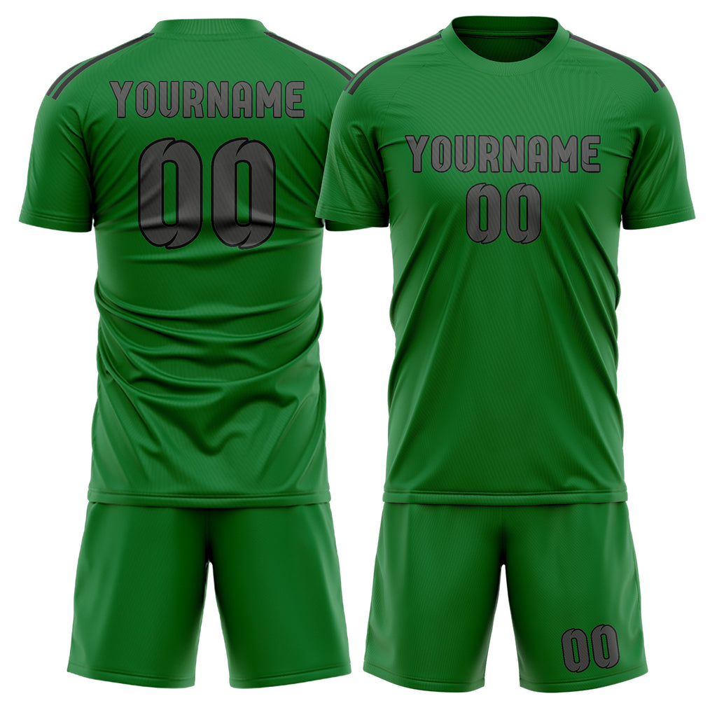 Custom Emerald Green Dark Grey Soccer Jersey