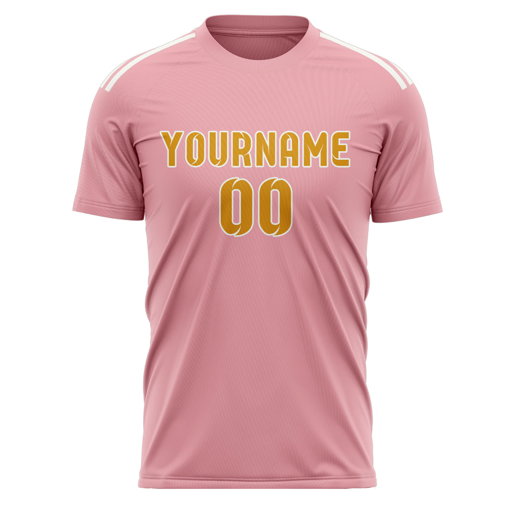 Custom Light Pink Yellow Soccer Jersey