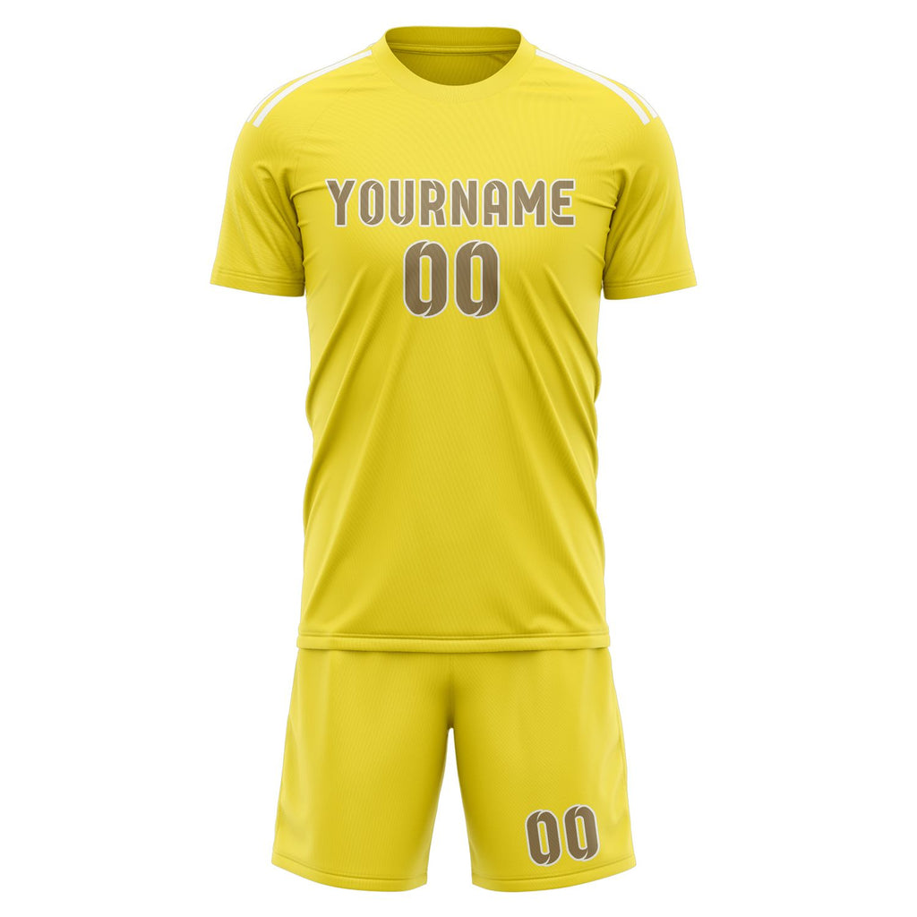 Custom Light Yellow Light Khaki Soccer Jersey