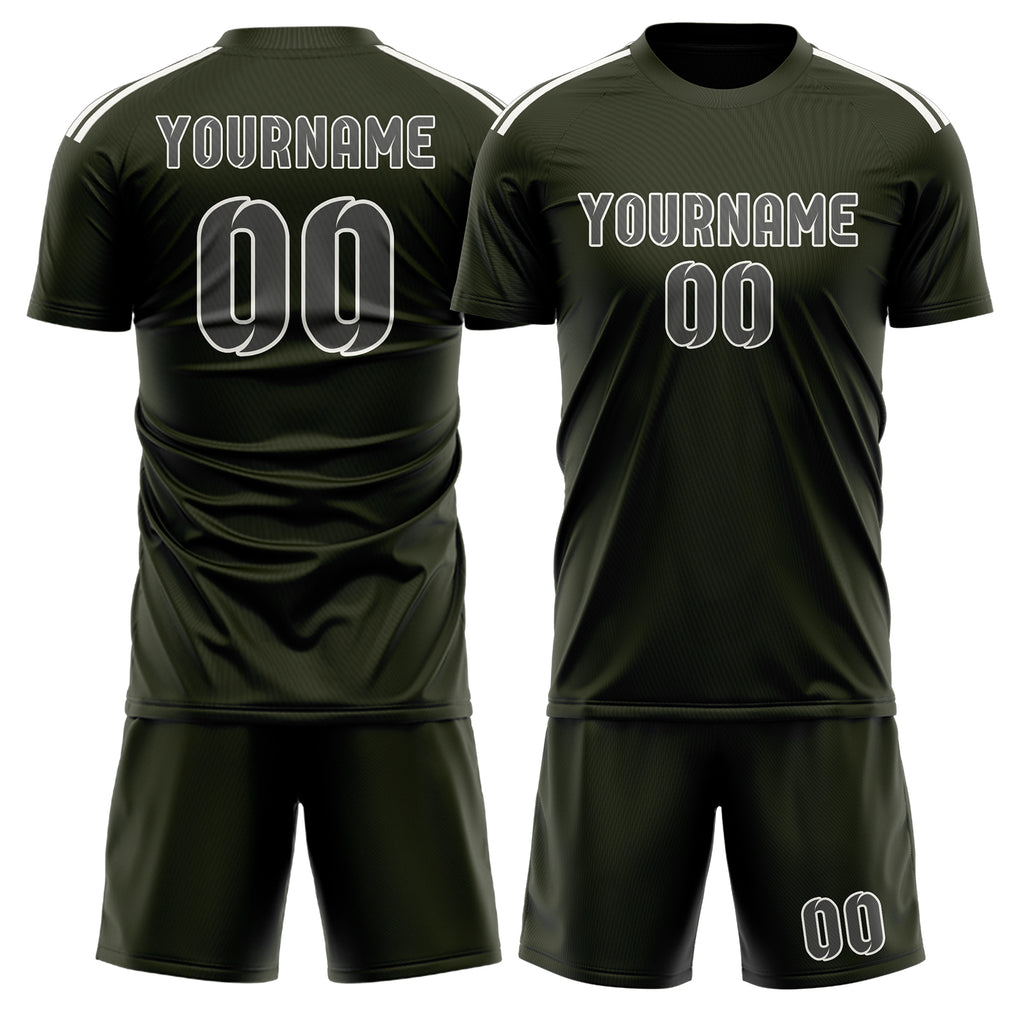 Custom Olive Dark Grey Soccer Jersey