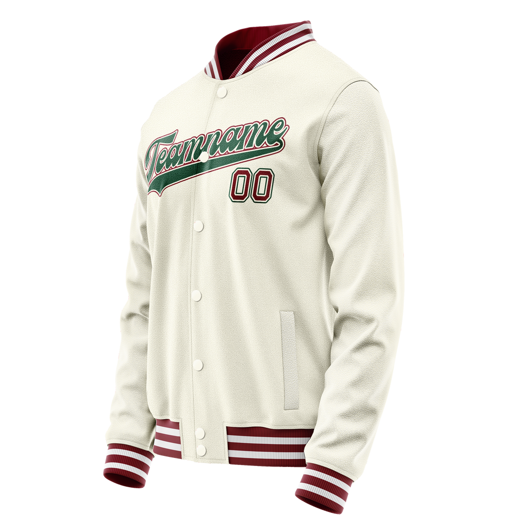Custom Cream Kelly-Green Solid Color Varsity Letterman Jacket