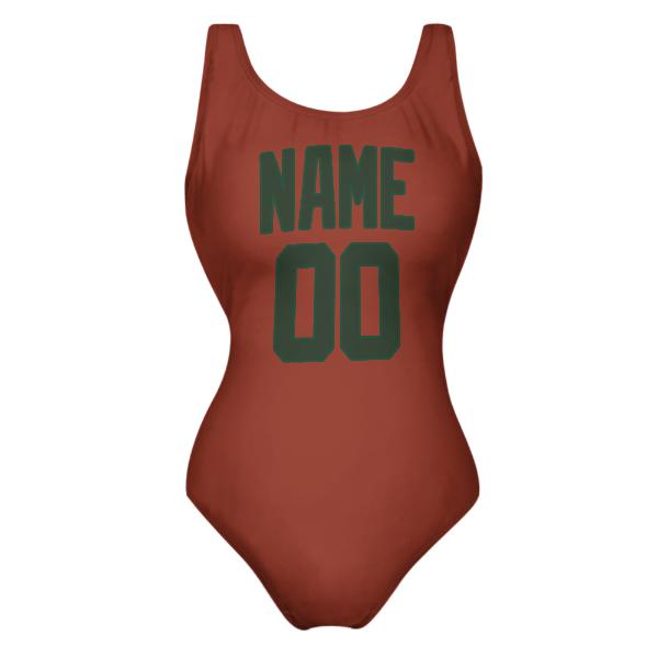 Custom Coral Red Dark Green Swimsuit
