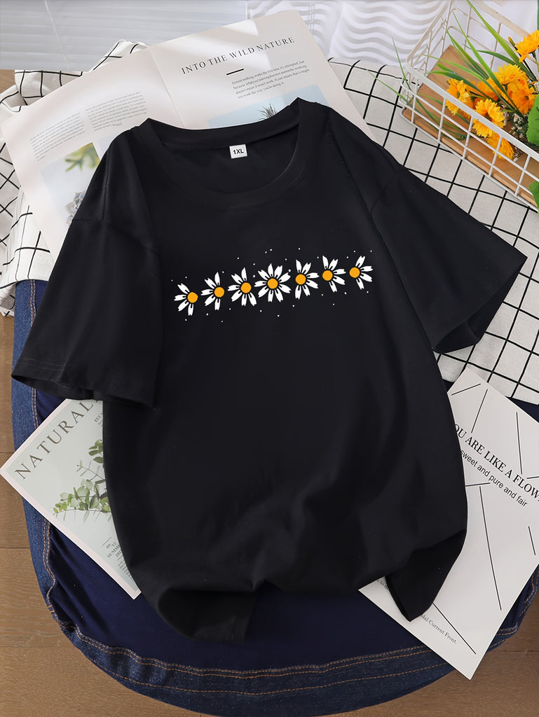 Graphic Tees Women Delicate White Daisy Chain With Small Yellow Buds Black T Shirt, Women Tshirts, Red T Shirt Women