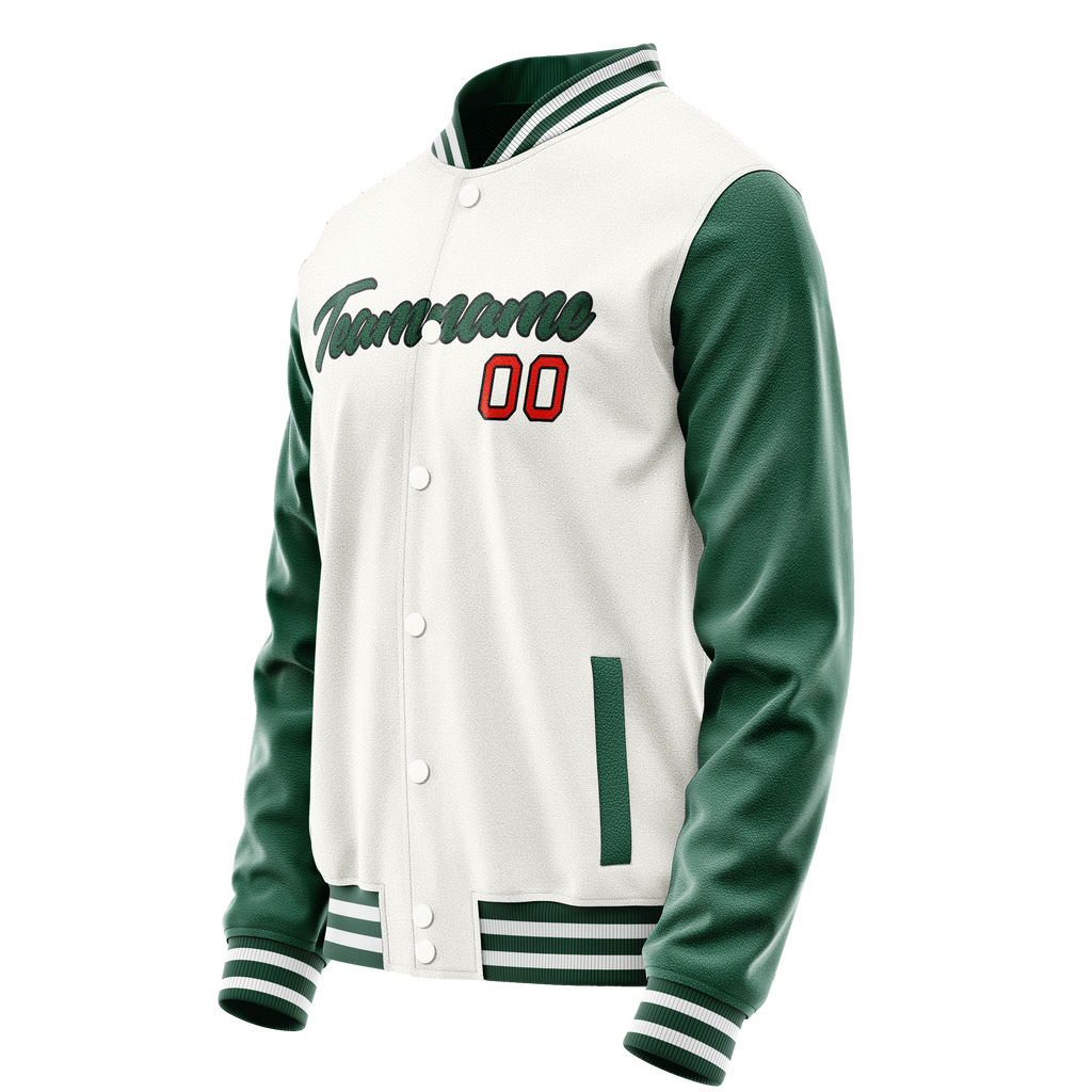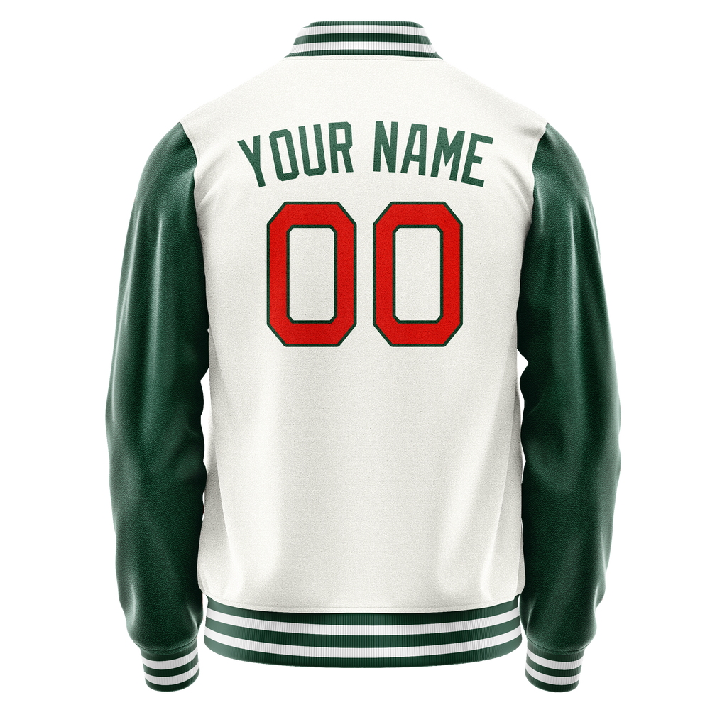 Custom White Kelly-Green Solid Color Varsity Letterman Jacket