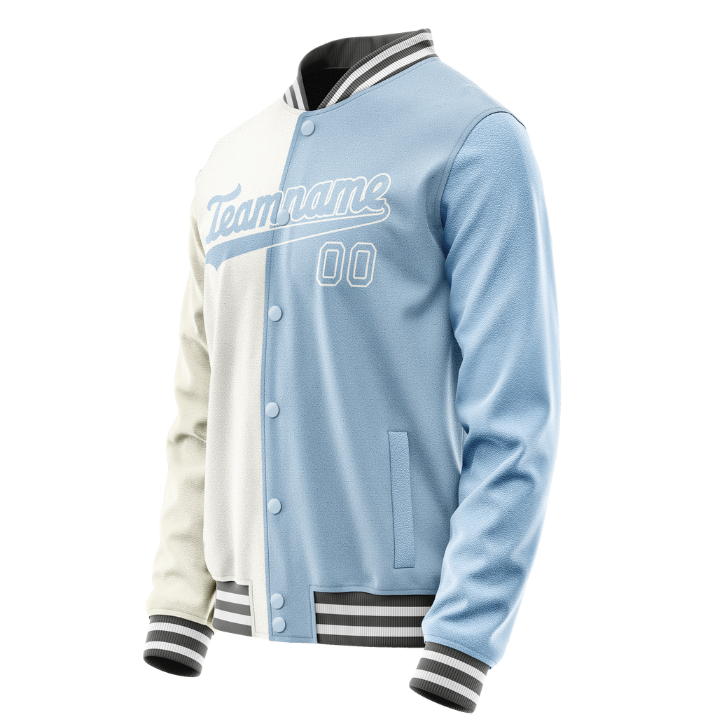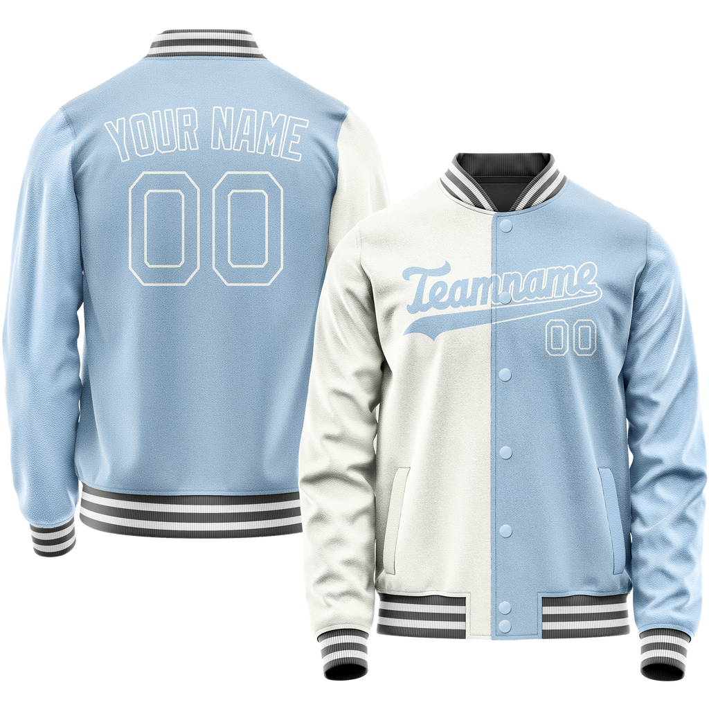 Custom White Light-Blue Split Varsity Letterman Jacket