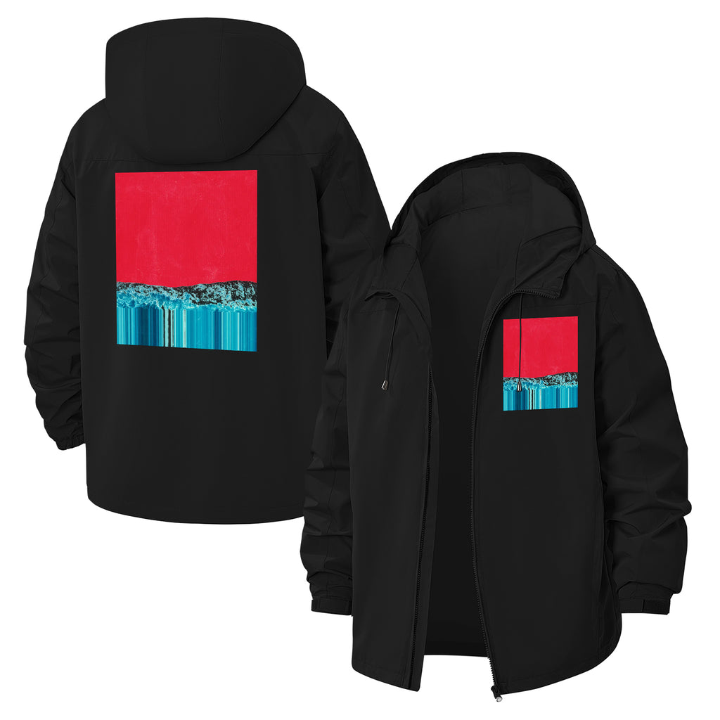 Abstract Geometric Unisex Full-Zip Printed Waterproof Hooded Windbreaker