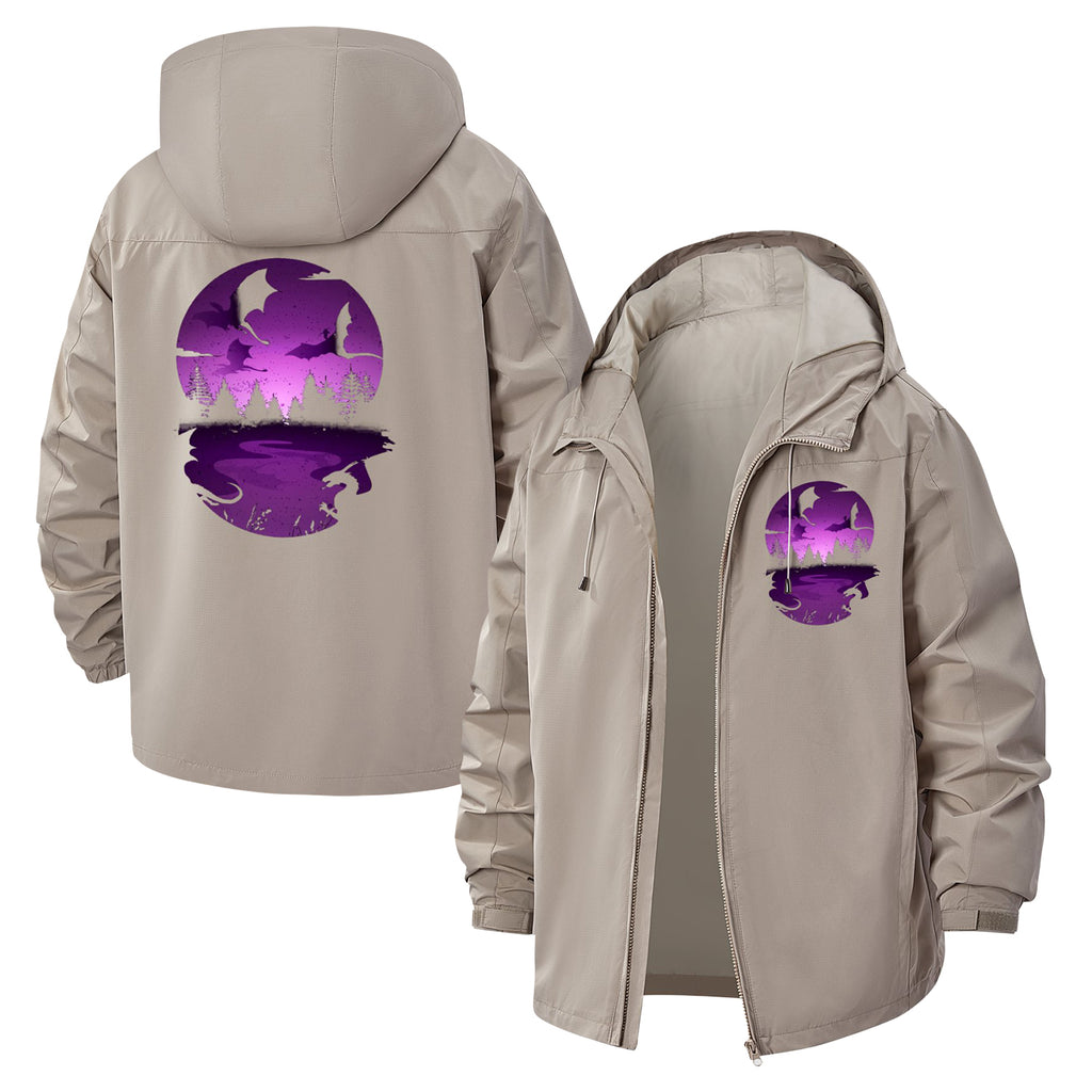 Bat Moonlight Forest Unisex Full-Zip Printed Waterproof Hooded Windbreaker