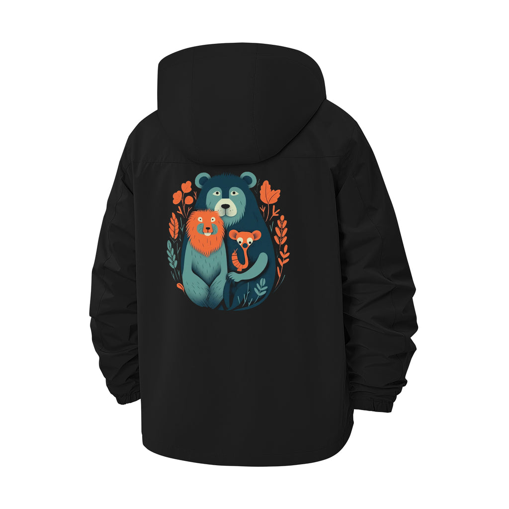 Bear and Fox Illustration Unisex Full-Zip Printed Waterproof Hooded Windbreaker