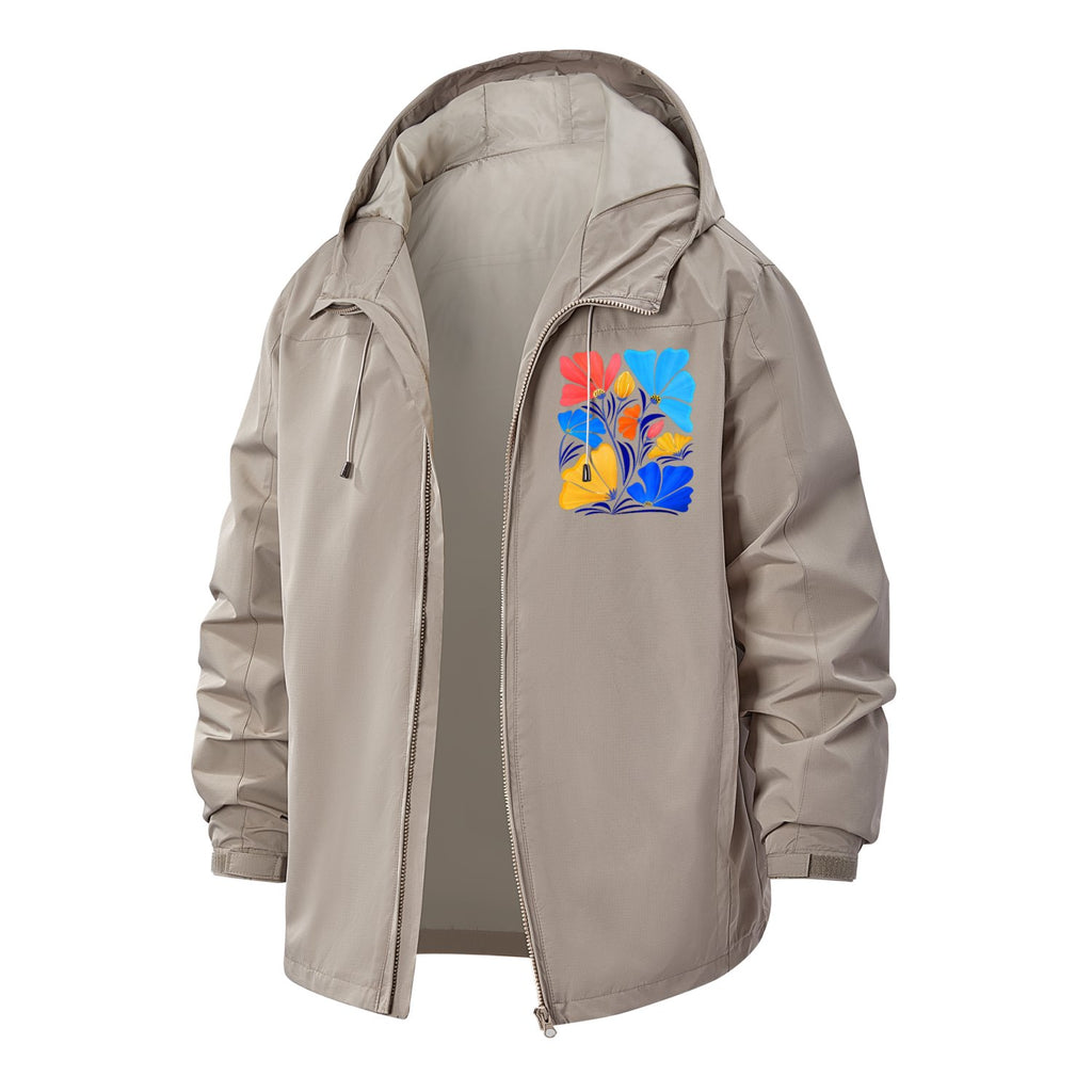 Bold Botanical Art Unisex Full-Zip Printed Waterproof Hooded Windbreaker