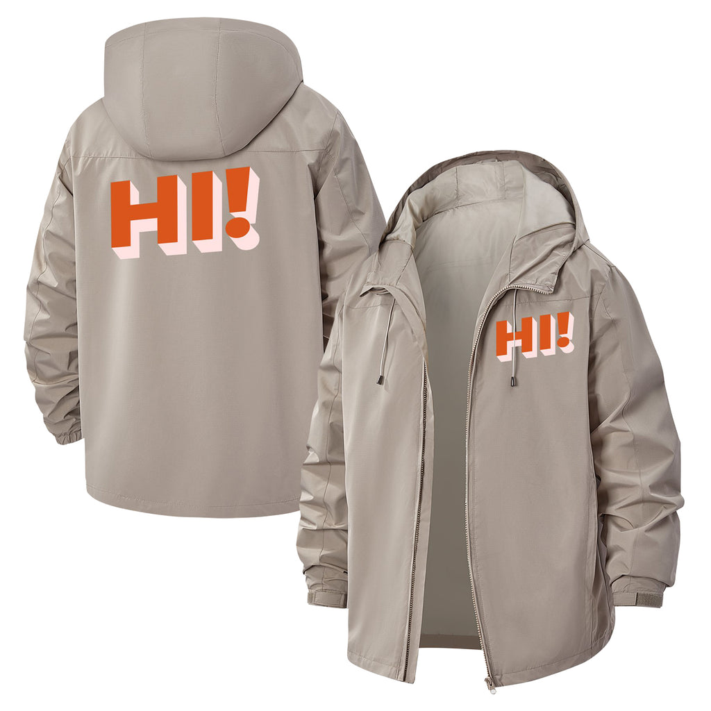 Bold HI! Typographic Unisex Full-Zip Printed Waterproof Hooded Windbreaker