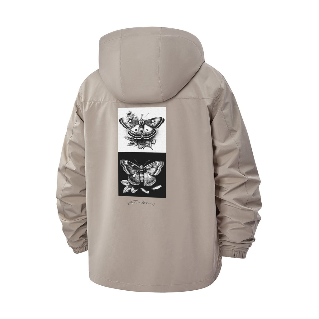 Butterfly Sketch Unisex Full-Zip Printed Waterproof Hooded Windbreaker