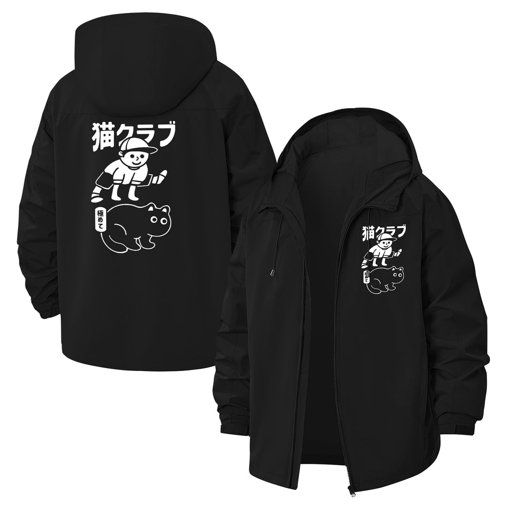 Cartoon Cat Club Unisex Full-Zip Printed Waterproof Hooded Windbreaker