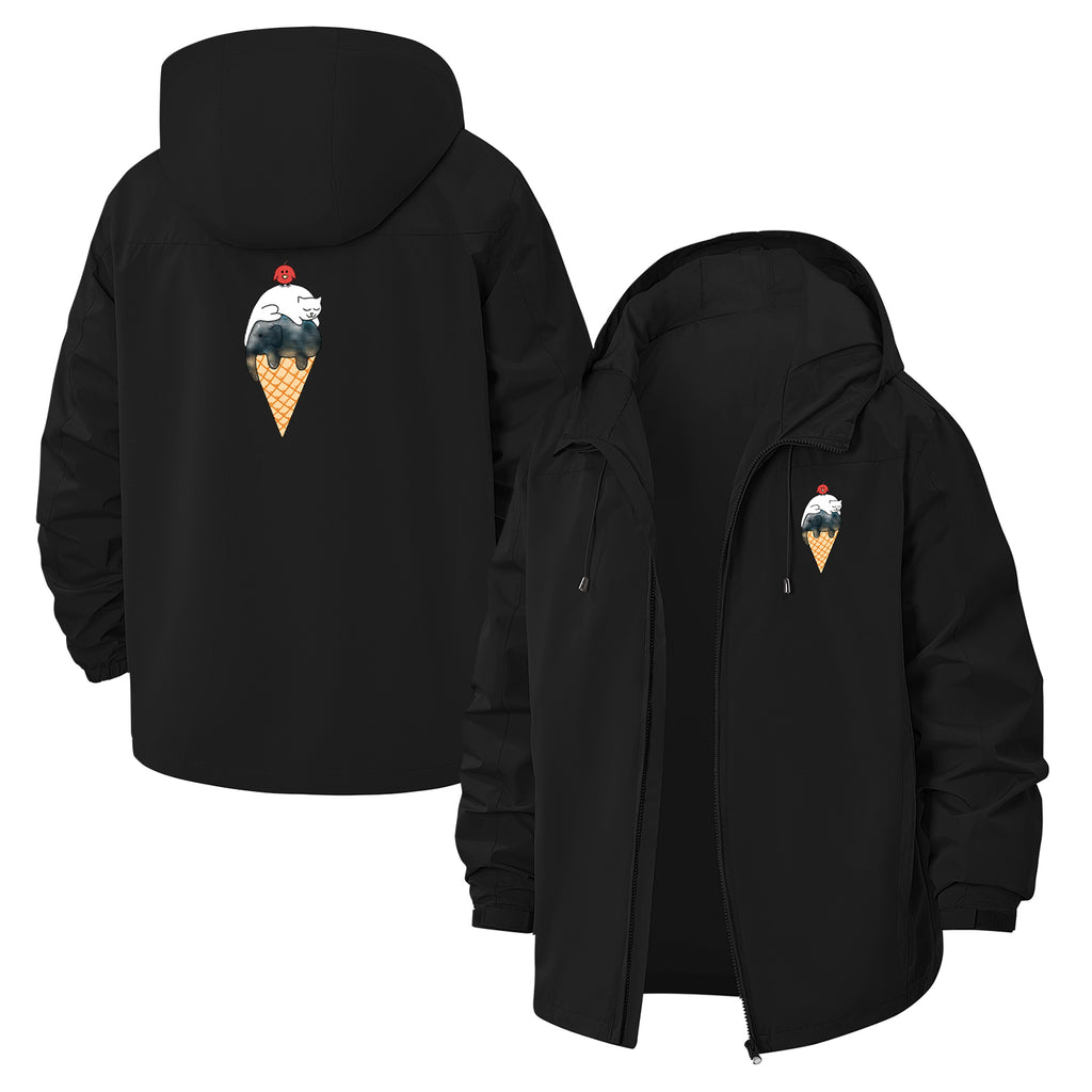 Cat Ice Cream Cone Unisex Full-Zip Printed Waterproof Hooded Windbreaker