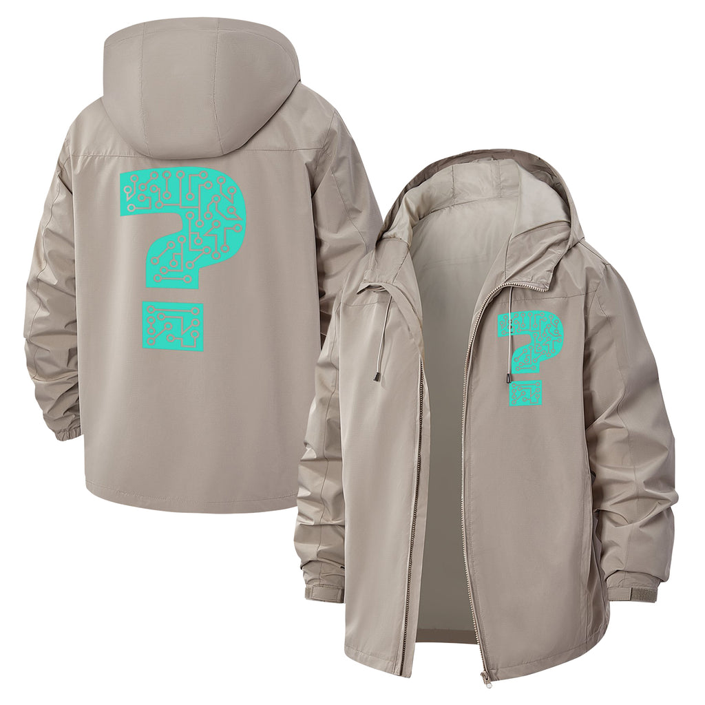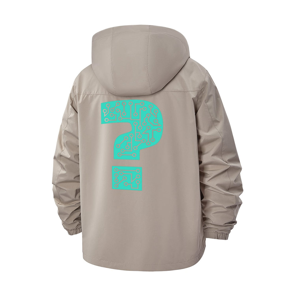 Circuit Pattern Question Mark Unisex Full-Zip Printed Waterproof Hooded Windbreaker