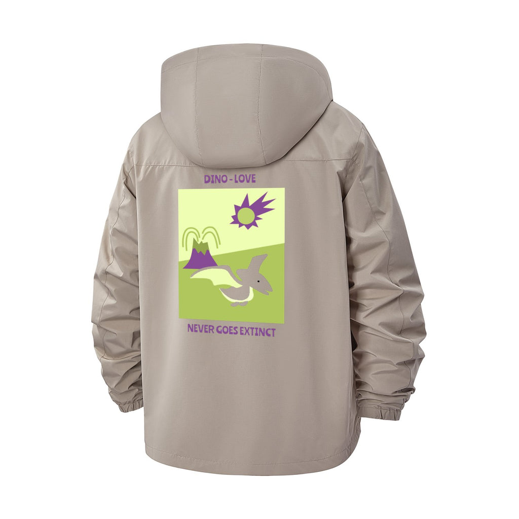 Dino Love Unisex Full-Zip Printed Waterproof Hooded Windbreaker