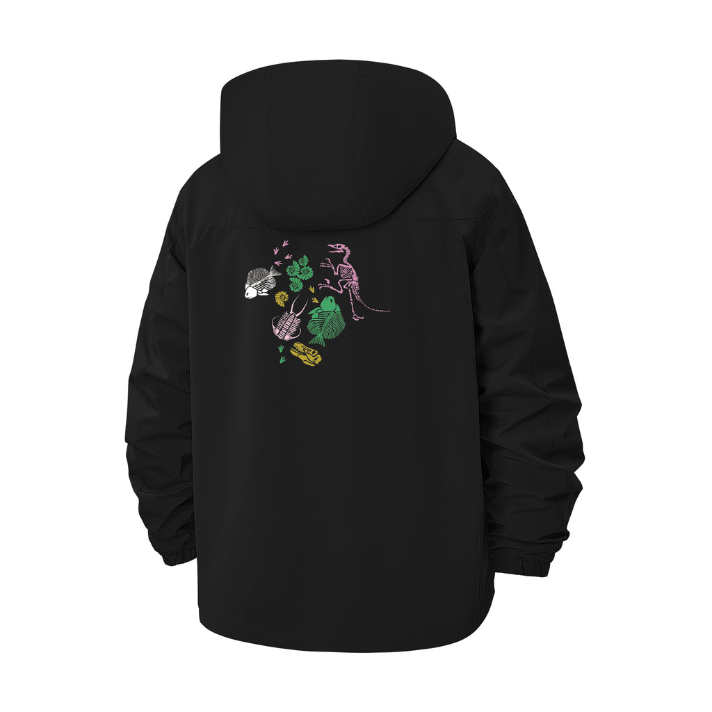 Dinosaur Fossil Motif Unisex Full-Zip Printed Waterproof Hooded Windbreaker