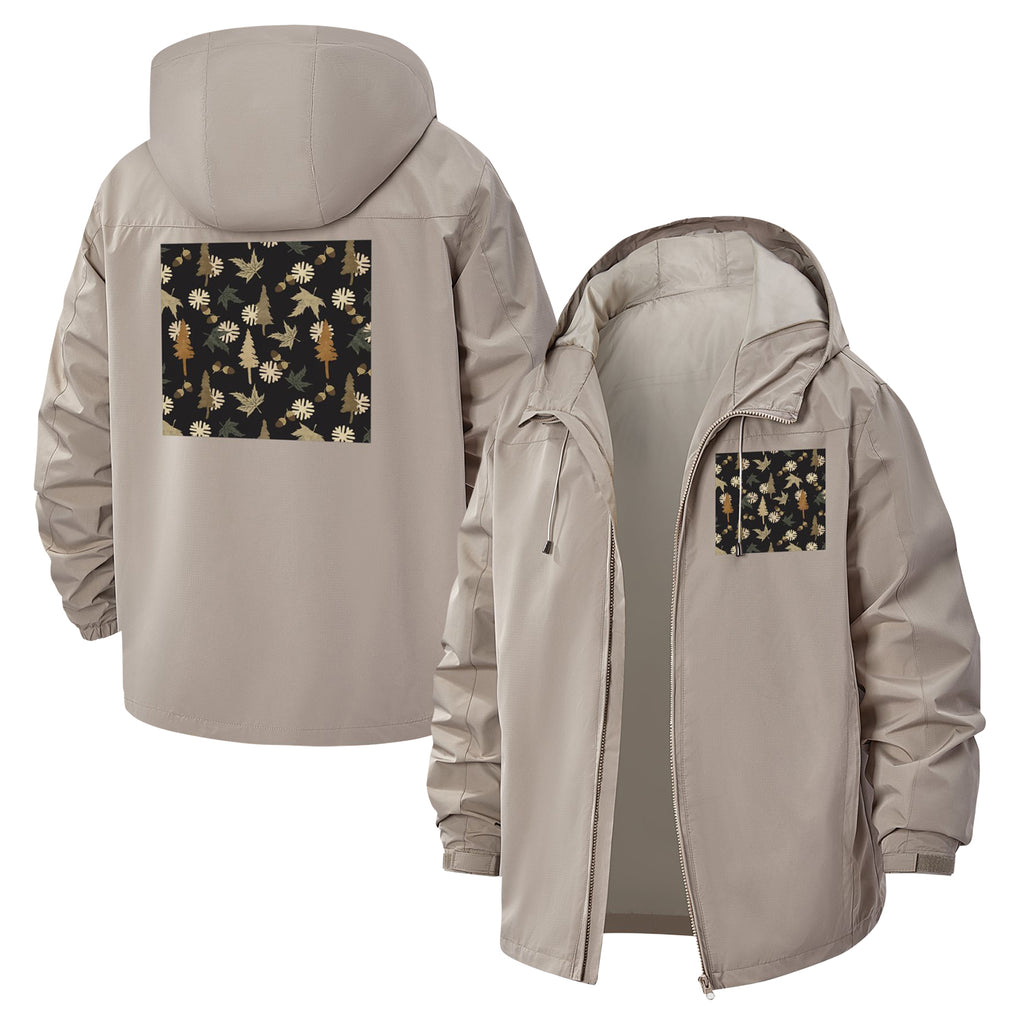 Dinosaur Fossil Pattern Unisex Full-Zip Printed Waterproof Hooded Windbreaker