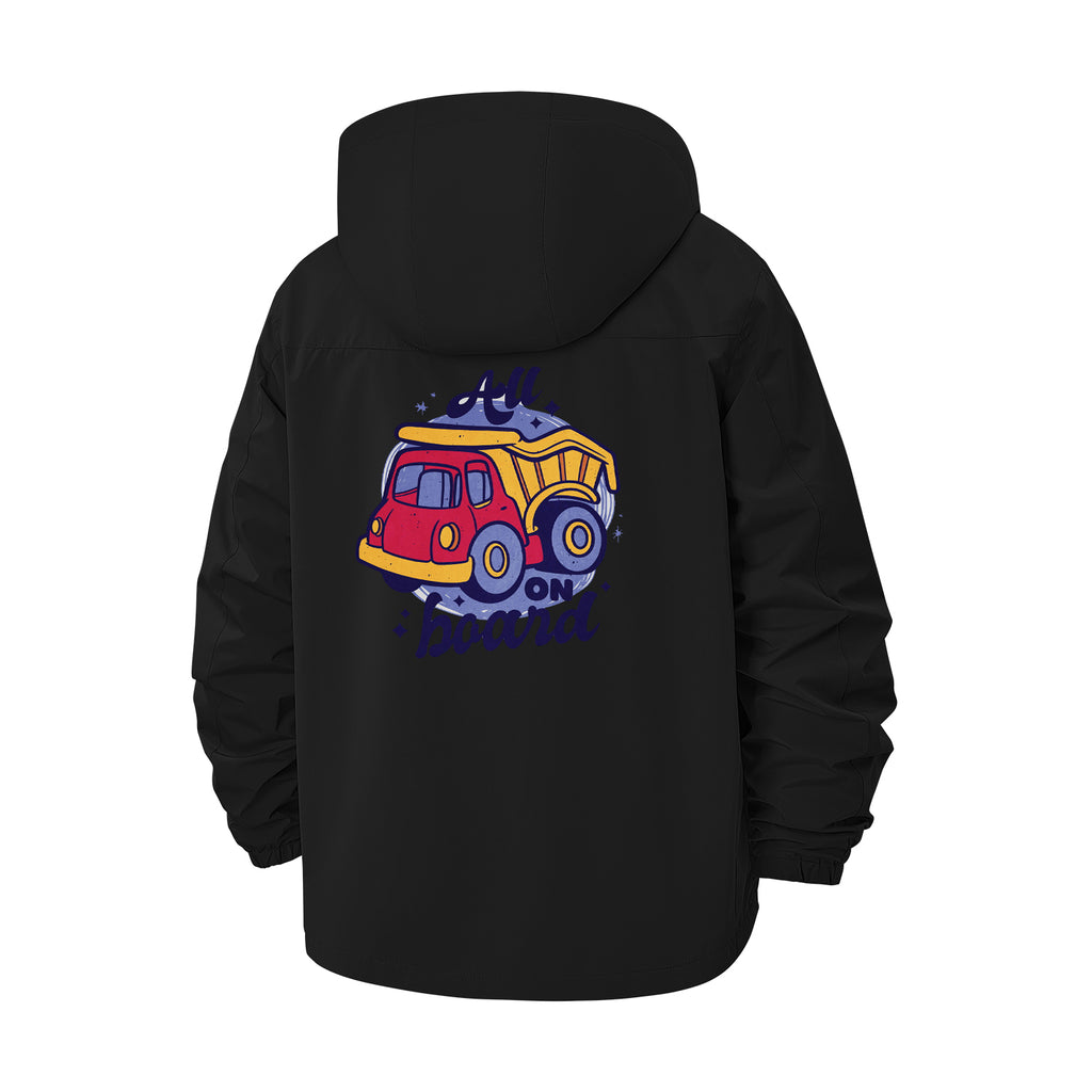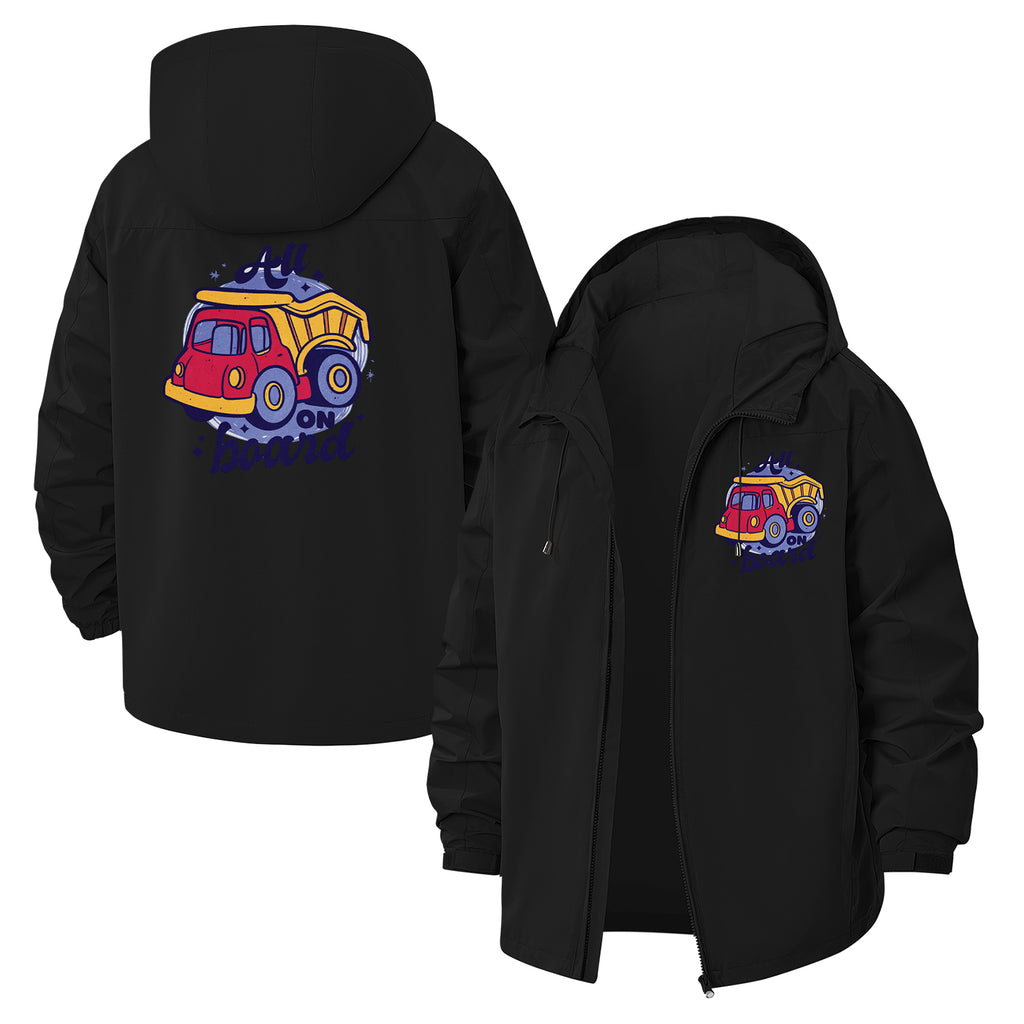 Dump Truck Cartoon Unisex Full-Zip Printed Waterproof Hooded Windbreaker