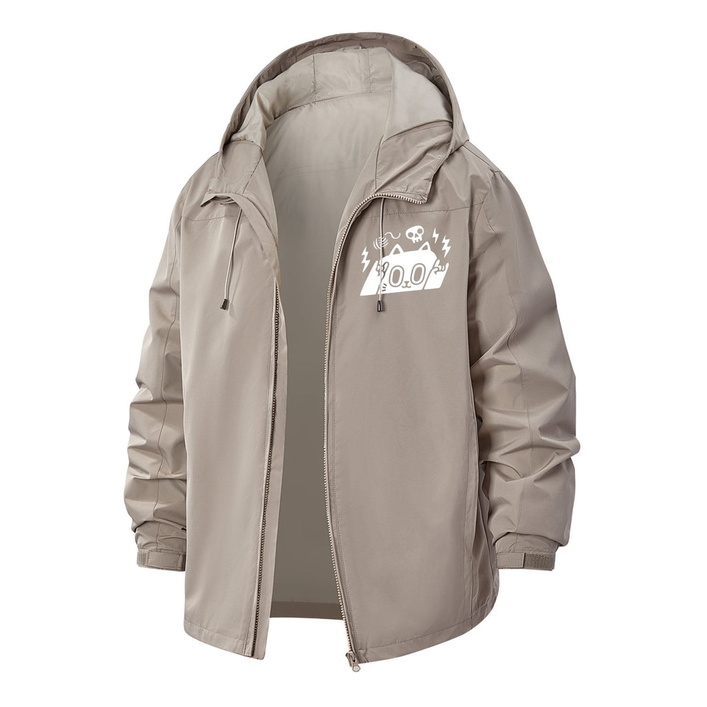 Edgy Cartoon Cat Unisex Full-Zip Printed Waterproof Hooded Windbreaker
