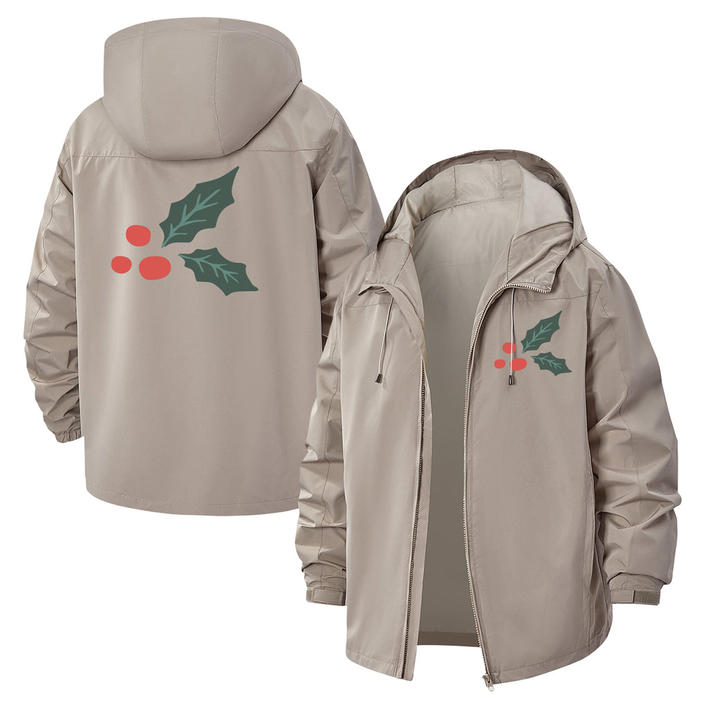 Festive Holly Unisex Full-Zip Printed Waterproof Hooded Windbreaker