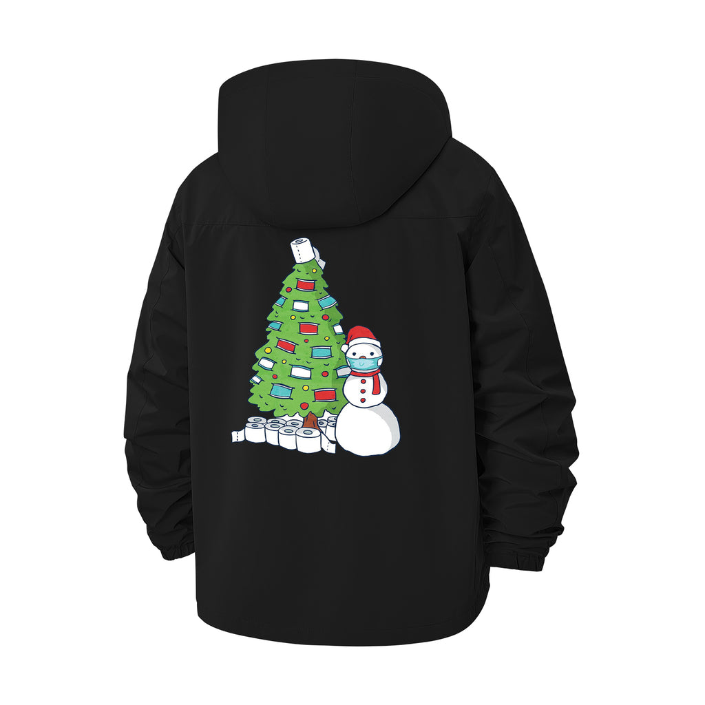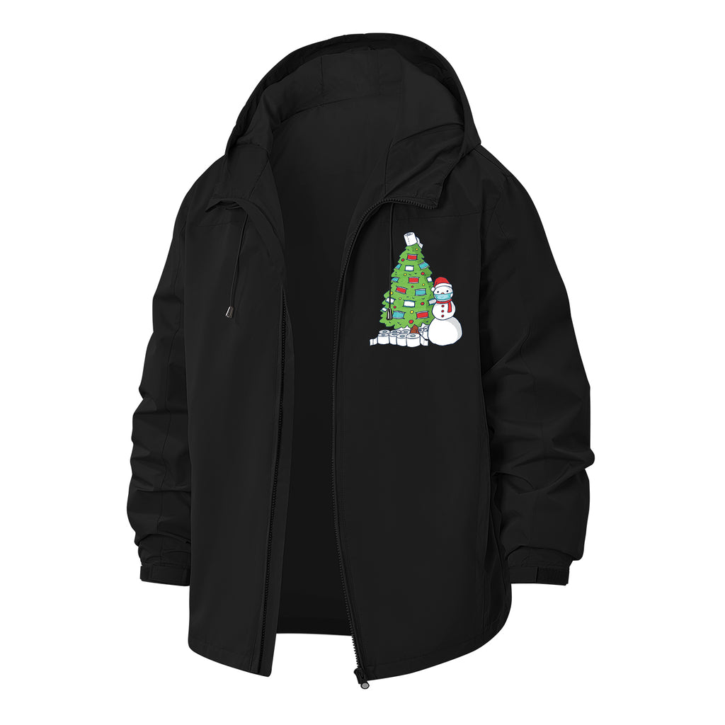 Festive Snowman and Tree Unisex Full-Zip Printed Waterproof Hooded Windbreaker
