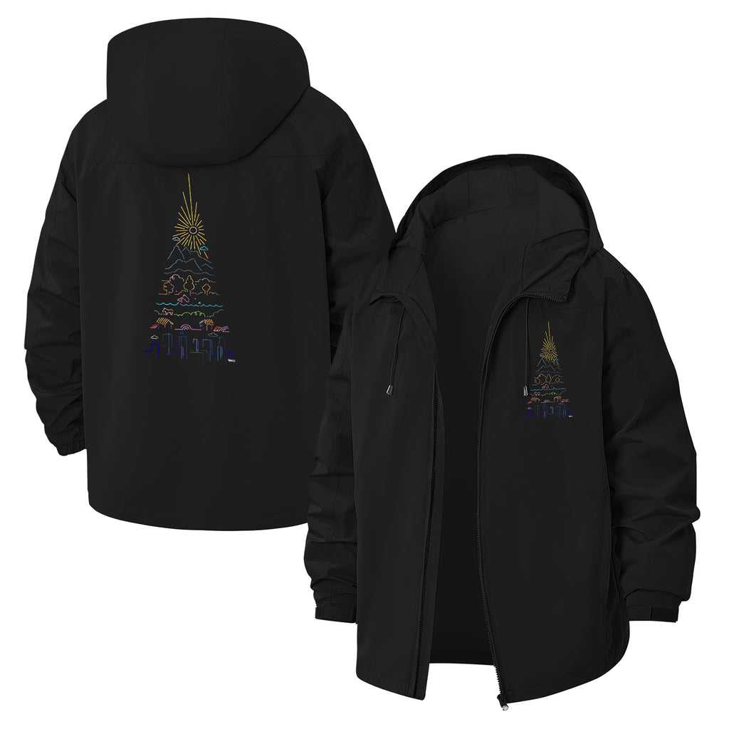Festive Tree Unisex Full-Zip Printed Waterproof Hooded Windbreaker