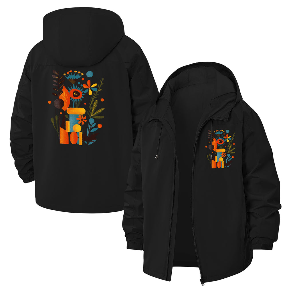 Fox And Botanical Print Unisex Full-Zip Printed Waterproof Hooded Windbreaker
