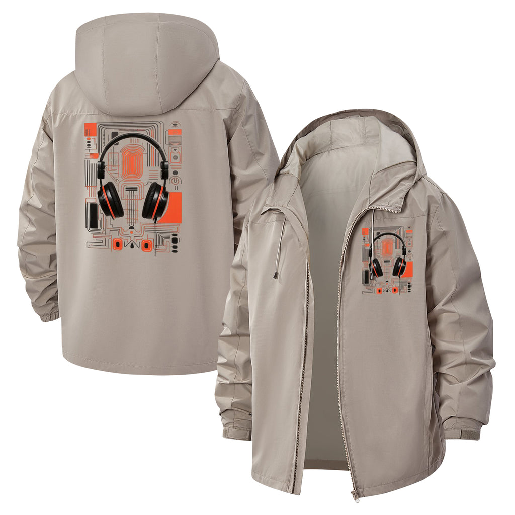Futuristic Circuit Design Unisex Full-Zip Printed Waterproof Hooded Windbreaker