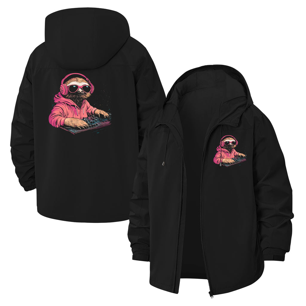 Gaming Sloth Unisex Full-Zip Printed Waterproof Hooded Windbreaker