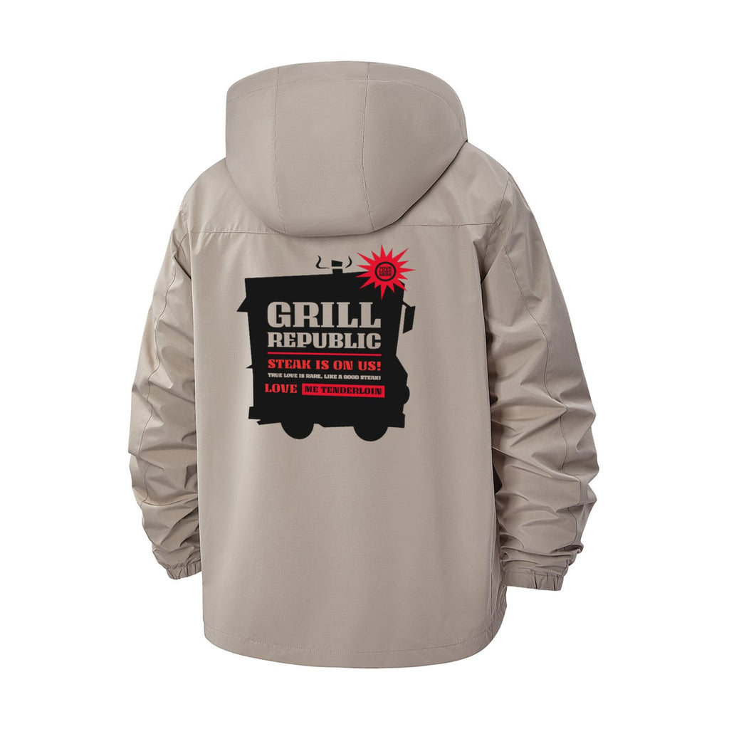 Grill Steak Humor Unisex Full-Zip Printed Waterproof Hooded Windbreaker