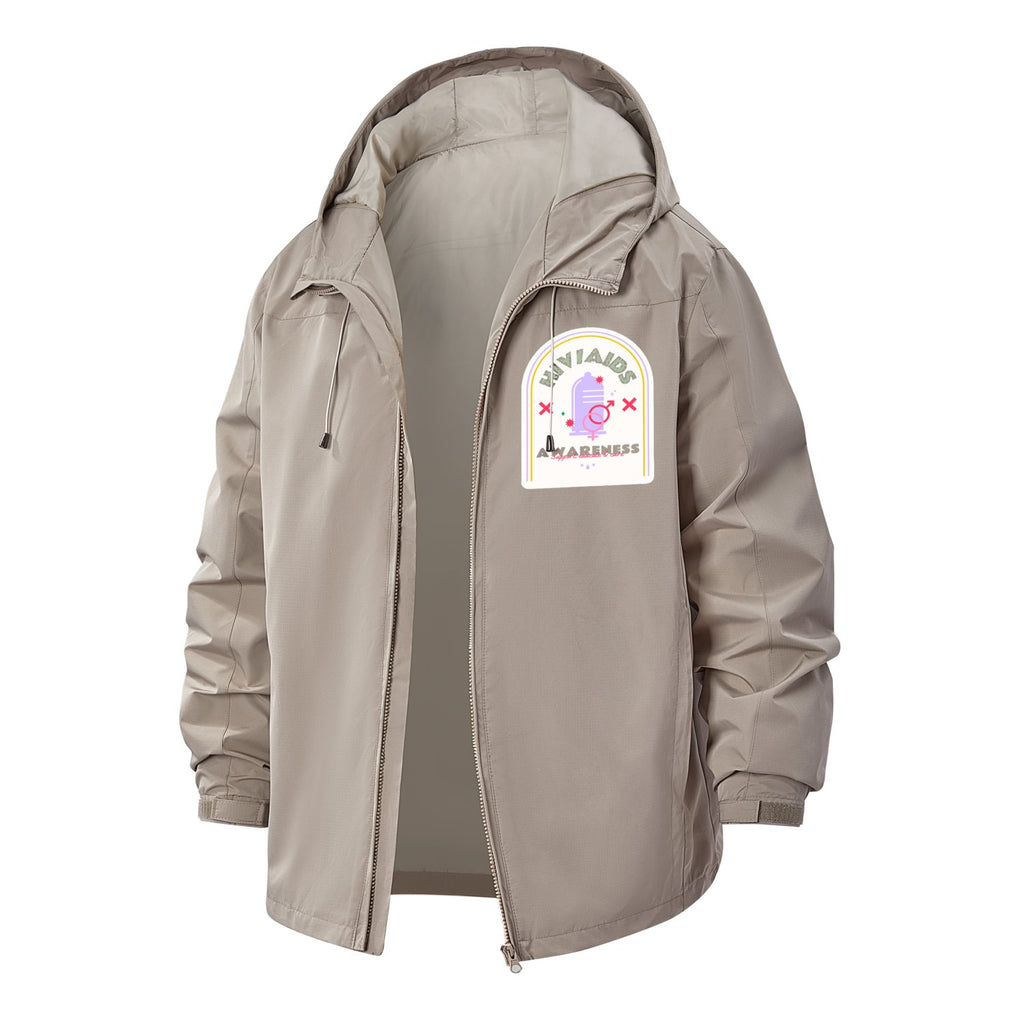 HIV AIDS Awareness Unisex Full-Zip Printed Waterproof Hooded Windbreaker